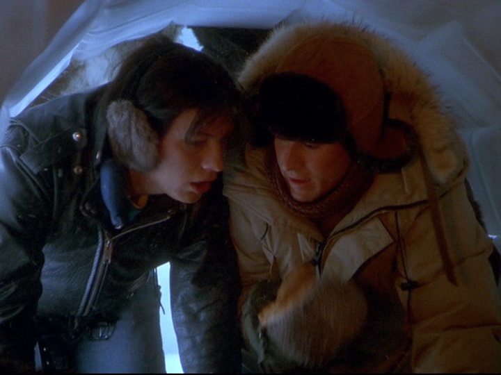 Previously, Joel’s dream in “Russian Flu” was filled with his ideas of Native culture, including totem poles and children dressed as Eskimos. Here, Joel imagines the ‘pretty girl’ Ed knows as living in an igloo. Obviously, he knows that wouldn’t be the case, but he still images her clothes and home as something he’s seen in movies and photographs. His dream also includes Native flute music, similar to what we have heard during scenes with Uncle Anku and One-Who-Waits. The beverage she offers him is unexpected (root beer with ice). (Apparently, the beverage might not be cold enough in the igloo without it.) We aren’t certain whether the language “Betty” speaks is an actual Native dialect or not, though we’re leaning towards ‘not’. (If you have any information, we’d love to hear it!) Perhaps Joel recasts Maggie as “Betty” because he hasn’t had luck consummating any dreams with the actual Maggie?