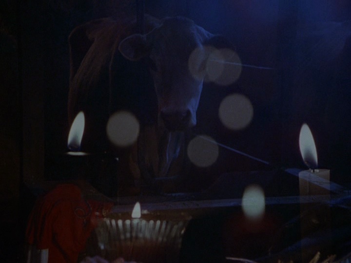 The cow looming over Ed and Lightfeather in the barn dissolves to a discussion of the “Russian soul” in the Brick: