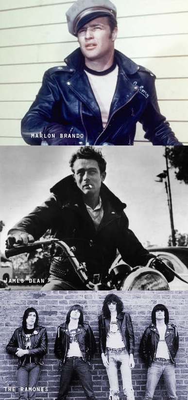 (For those interested, the classic leather jackets that both Brando and Dean wore were from Schott’s “Perfecto” model, which you can still purchase today. It is unclear if this is the brand that Ed wears though. Oh, and check out this article about the history of the motorcycle jacket from Glamour Magazine)