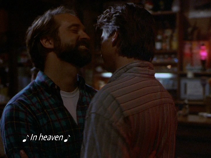 – In the scene at the Brick when we first see Holling and Anita, the song “Sugar Moon” by K.D. Lang playing in the background mentions “heaven” (note: this is replaced in the DVD version). The lyrics include following lines: “I can see us right now / get the calendar down/ draw a circle around/ The day we’re heaven bound”