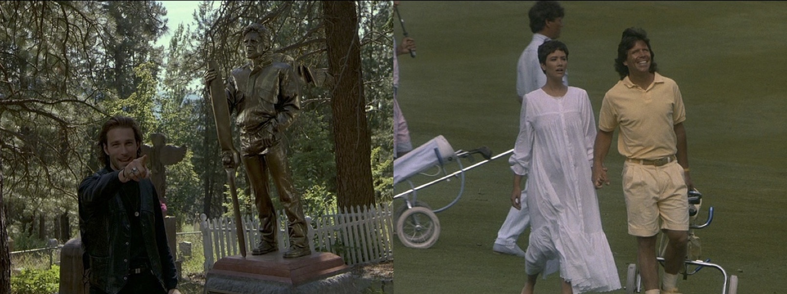 Of course there is also the amusing visual joke in which we see the golden statue of Rick in the first scene, then later in a dream sequence we see Rick in heaven, wearing an outfit that is head-to-toe yellow.