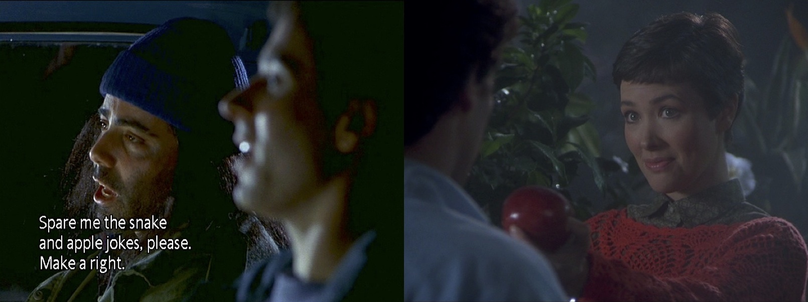 A scene where Joel is framed by Adam and Eve even echoes the scene when Shelly is similarly framed by Anita and Holling in 2.7 Slow Dance.