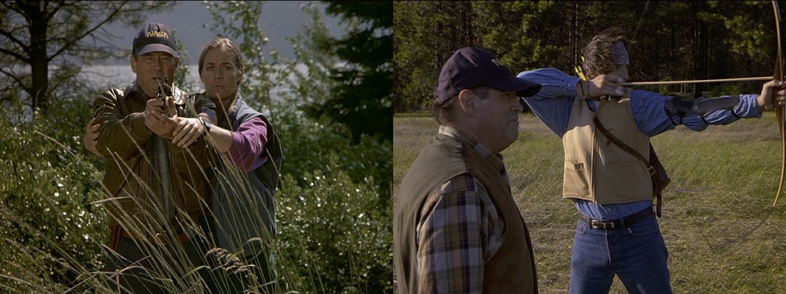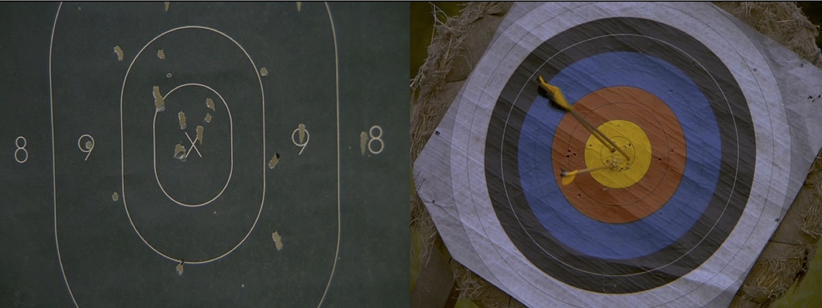 Scenes are also paralleled in the episode. There are two scenes of target practice: one featuring guns with Maurice and Barbara, and the other with bows and arrows with Chris and Maurice. We see near identical shots of targets in both scenes.