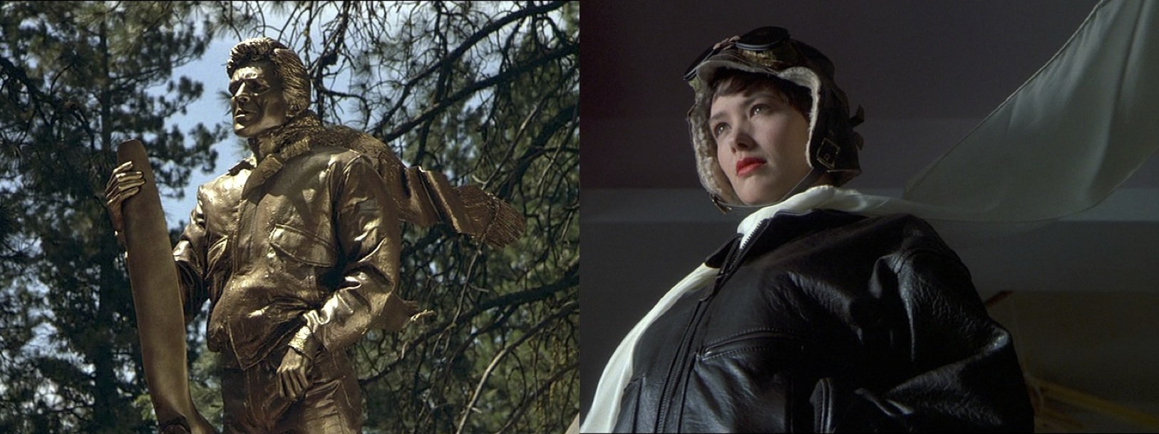Even Rick’s statue is surprisingly reminiscent of Joel’s dream sequence in 1.5 Russian Flu, in which Maggie is portrayed as an Amelia Earhart-type figure (note the scarf blown back by the wind in both instances).