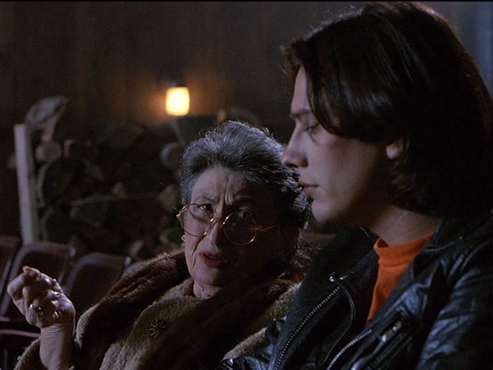 Interestingly, in the script Ed is actually sitting in the theatre with Woody Allen (in an earlier draft of the script) or “a young boy who looks like a young Woody Allen” (in the “pink” revision of the script; p. 28). This explains why some of the dialogue doesn’t make sense for Grandma Woody. Does it really make sense for her to mention, “Probably he shot in daylight and pushed the film”? This seems like a technical aspect of cinema that Woody Allen’s mother wouldn’t likely be aware of. In fact, that’s the case for much of Grandma Woody’s dialogue; it sounds more like Woody Allen talking than his mother. In the script, Ed asks Young Woody what he does when he doesn’t get any ideas. Young Woody replies, “Well, if nothing comes to mind, I’ll do a few homages, one to Bergman here, one to Fellini there” (p. 30). Here, Ed knowingly points to Allen’s films Interiors and Stardust Memories.
