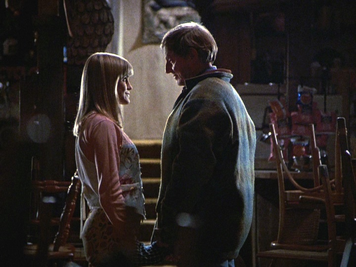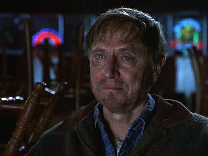 The music that plays during this scene and other scenes with this storyline (we think it might be called “Sleepy Steel”) is the same music that plays during all three versions of the story of Shelly arriving in Cicely in 3.2. We’ve discussed on the podcast more than once the cumulative effect of music in Northern Exposure, how it evokes previous scenes and moments for the viewer, and this is another example of that effect.