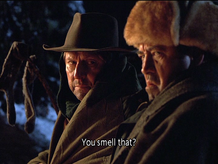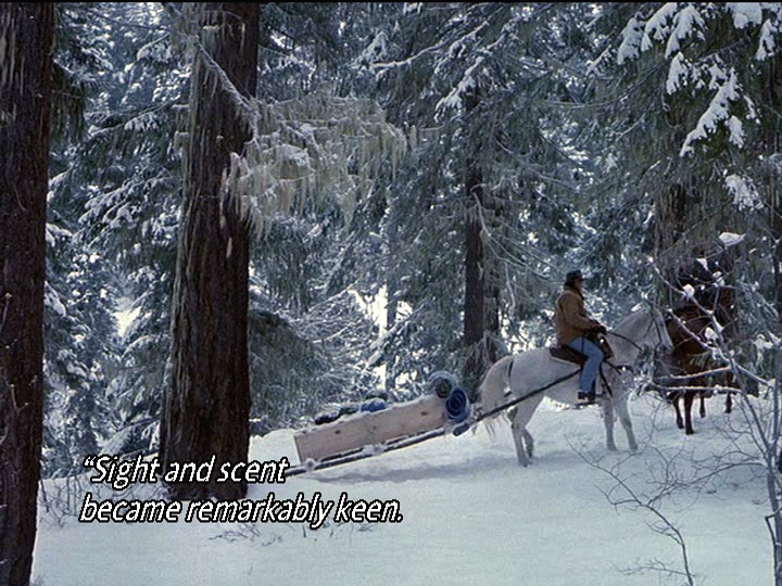 Throughout “The Three Amigos”, we see shots of Holling and Maurice on their adventure to bury Bill Planey paired with passages being read aloud on KBHR from The Call of the Wild by Jack London (aka Chris’ “main man”). In our podcast discussion, we mentioned that this was done surprisingly well (and speculated that the episode must have been based around passages from the book rather than searching through the text for appropriate passages to illustrate the scenes). One of the elements that was done particularly well is the idea that Holling’s and Maurice’s senses are heightened while they’re in the woods, something we hear referenced in one of the passages Chris reads only after we’ve seen how much more acute Holling and Maurice feel their senses of sight, scent, taste, and sound are. In fact, the way they determine that Bill needs to be buried relates to his odour. This moment also echoes when Holling asked earlier, “You smell that?” when they set out on their trip. We begin with the scent of life (via the sweet odour of pine) and end with the scent of death.