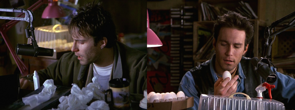 Take Chris, who undergoes a physical change (red-eyed, runny-nosed and allergy-ridden to normal). The balled up tissues in an earlier scene is very reminiscent of the yet-to-hatch eggs.