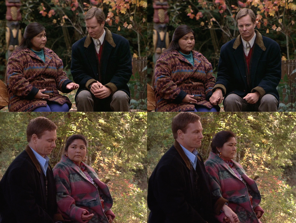 The relationship between Marilyn and the Flying Man in “On Your Own” (4.6) echoes many of the moments in “Get Real” (3.9). This week, we thought it would be interesting to track a few of the overlapping elements, which we argued add emotional resonance to these moments, by using images from both episodes.