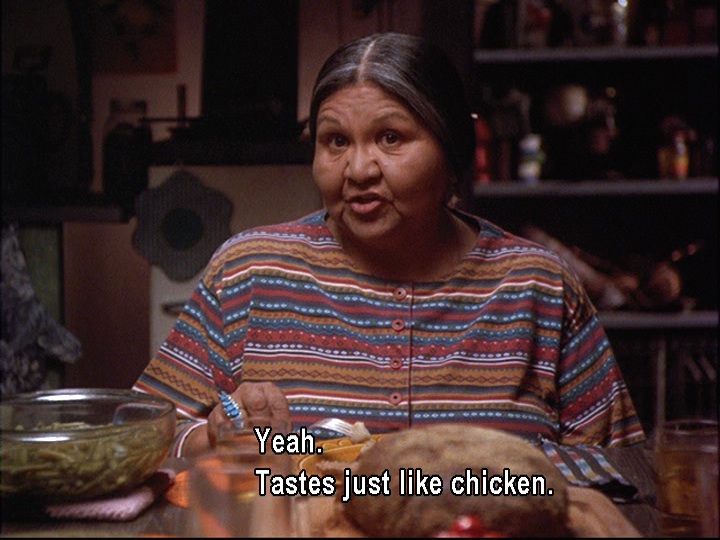 What we want to focus on, however, is the imagery of birds that is used throughout this episode. Of course, we have the relationship between Ed and Princess as a central storyline (Ed, an orphan, is taking care of another orphan), but the entire episode is framed with the idea of birds. In the opening scene, Chris remarks that “cranes carry this heavy mystical baggage you know, they’re icons of happiness and fidelity. The Vietnamese believe that cranes cart our souls up to heaven on their wings.” For Chris, birds are also a symbol of freedom, and they tempt him to go south. In the final scene of the episode, Ed and Chris do a crane dance to put a switch on Princess’ hormones so she will find a bird mate. Birds are bookends, and birds are marked throughout.