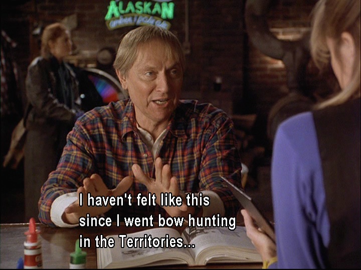 By contrast, the female characters in this episode don’t tend to employ much violent imagery in their conversations. Sure, Maggie and Jane talk about whether or not women “have that ‘bloodlust, warrior instinct’ thing”, but it doesn’t seem to be seeping into their language and thoughts in the same way it is with the male characters. Okay, Shelly does bring up some violent imagery when she mentions questioning her chances when competing in Miss Northwest Passage.