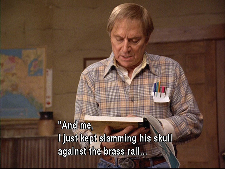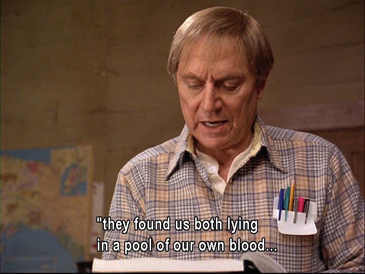 Every male character in this episode brings up death or violence. This is even true of the three characters who only appear in a single scene each: Ed, Maurice, and the detective.