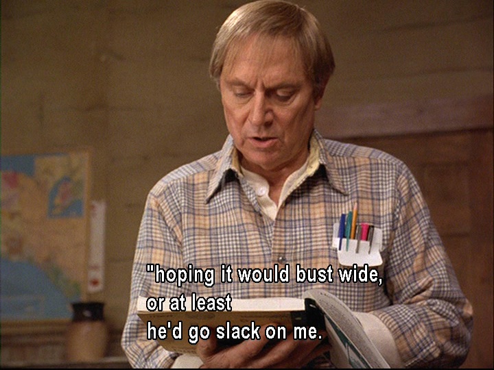Holling tells his class the tale of his bloody fighting with Oats, which Jane describes as “vivid.” She’s right about that.