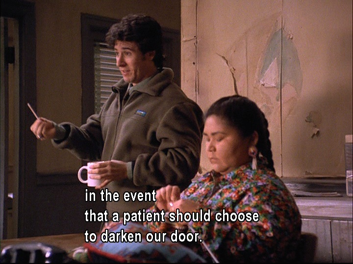 The Notable: We again encounter Jo Anderson, who played Roslyn in the episode “Cicely.” It’s a little weird but cool to see her play the independent teacher Jane Harris (though we don’t agree with her opinions about women).