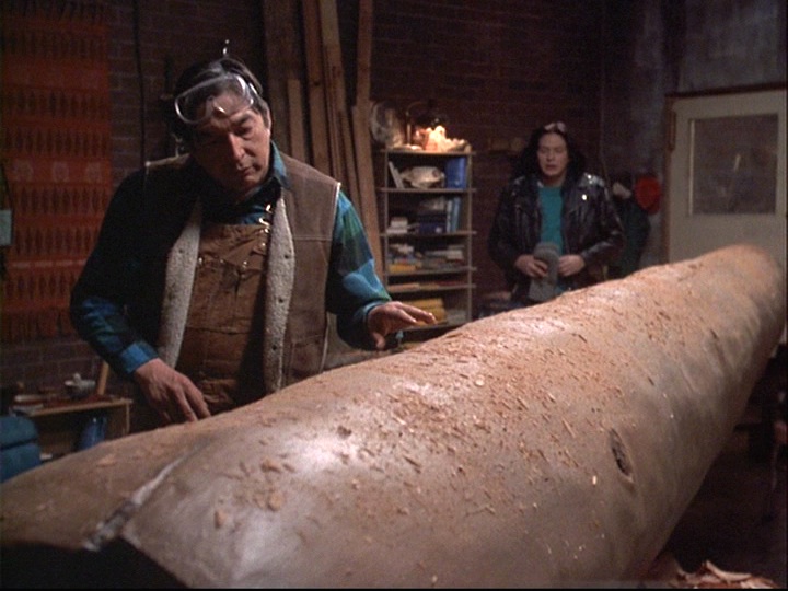 “Family Feud” (4.19) features the return of Leonard Quinhagak (played by Graham Greene). He is revealed to be an accomplished totem pole carver, besides being a shaman (as he was shown to be in “Wake Up Call” [3.19]). He also solves two of the episode’s three thorny problems. The first problem he tackles is Shelly’s visions of dancers, which have been plaguing her since the opening scene.