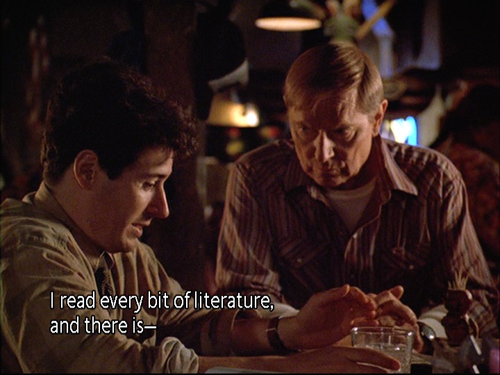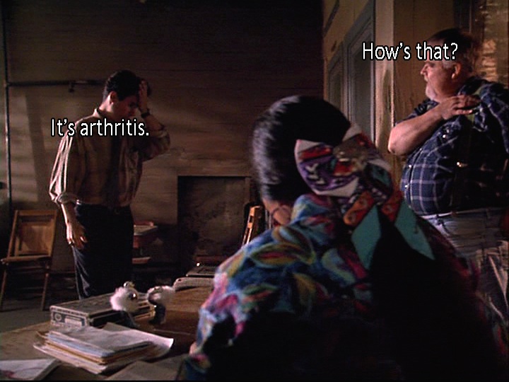 5-1-neil-technical01 5-1-neil-technical02 5-1-neil-technical03 5-1-neil-technical04 5-1-neil-technical05 5-1-neil-technical06 5-1-neil-technical07As we might expect, Joel gravitates towards salmonberry tea and the folk remedy side of things as he begins to heal. Interestingly, he also brings up the language he used to criticize Maggie (“I said you were a dolt and stupid and all that stuff”). Before leaving this storyline, it’s also worth mentioning how the ways of knowing in this episode overlap with the second episode of the series, “Brains, Know-How and Native Intelligence” (1.2). Here, Joel needs to dispense with his medical knowledge and absorb some of the know-how that people who have experienced glacier dropsy dealt with it. In fact, glacier dropsy could be seen as almost being a rite of passage for Joel, which we learn is “an illness particular to this part of Alaska” that “everybody gets sooner or later.” Joel is becoming more and more of a Cicelian, whether he likes it or not.