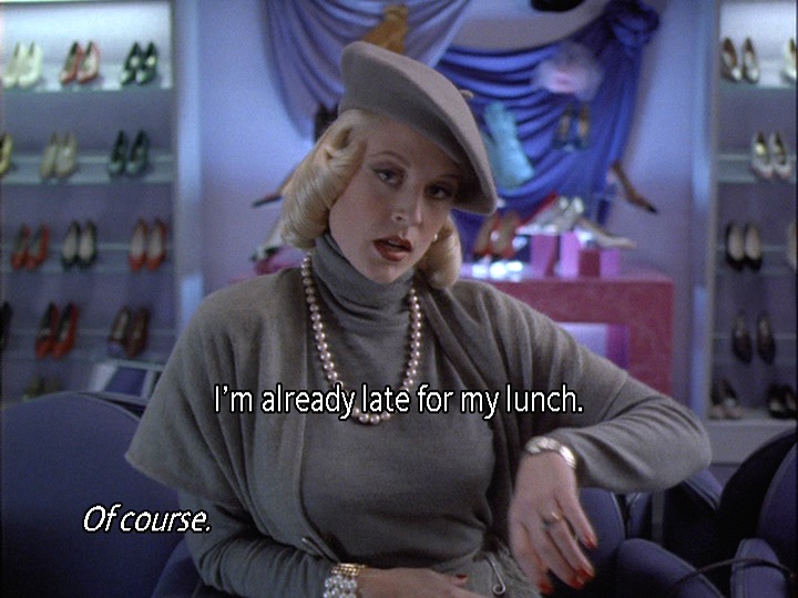 Similarly, Maurice’s secret shoe fetish is also revealed through subtle mentions of food. It is significant that in the first dream, the woman in the shoe store states, “I’m already late for my lunch.” In the second dream, set at a 1960’s era cocktail party, a guest laments about the lack of paella in Cuba: “Everyone’s running around with pistols and uniforms, and you can’t even get a decent paella.” Interestingly, these mentions of food come right before the display of shoes and the sexual desire for fancy footwear.