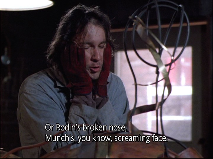 The storyline the least obviously connected to the body involves Maurice and Cal. The body in question (to reference another body-focused episode of Northern Exposure) in that narrative is the violin. Its beauty is described by the violin dealer and Cal later says that if a violin isn’t played it will die, just like a living thing. Officer Semanski likens Cal’s strong emotions for the violin to those of an obsessed lover.