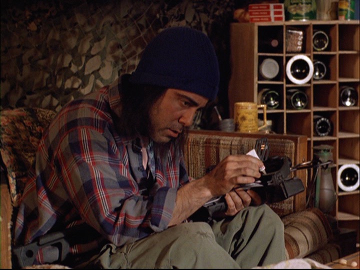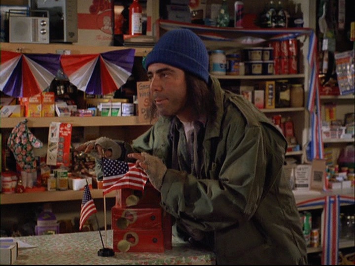 One of the subtle ways that Northern Exposure can extend ideas in the series is through visual cues. There are a number of ways that this can be seen in the episode “A Bolt From the Blue.” For example, nature figures prominently in Ed’s storyline of being struck by lightning. We see several visuals of nature, including the opening scene and Joel’s initial discussion with Ranger Burns. The forest figures in nearly every shot in both scenes.