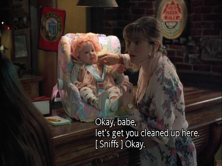 Before Father McKerry arrives, Shelly tries to clean up Randi and tells Holling to take off his dirty apron.